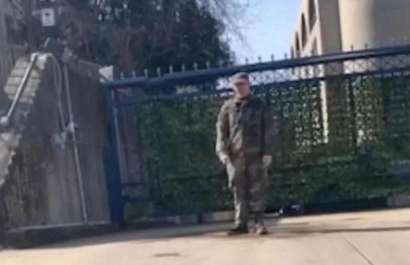 According to Axios, a video of the incident shows the airman saying he would “no longer be complicit in genocide” and that he was about to “engage in an extreme act of protest.”