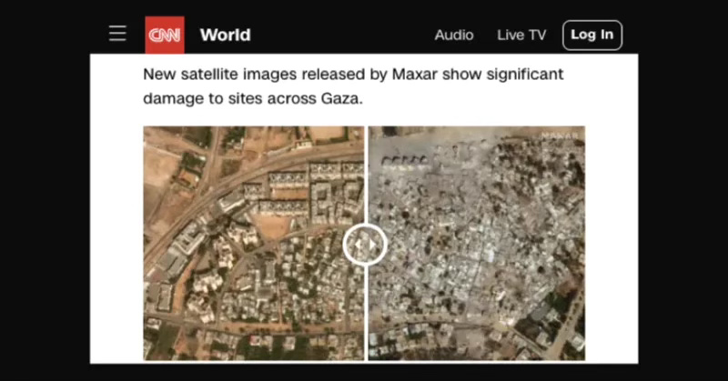 Consider these satellite images from Gaza showing massive destruction from Israeli bombing.
