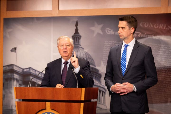 Sen. Tom Cotton (R-AR), the chairman of the Senate Intelligence Committee said, minutes after reports of the operation began, “Proud to stand with Israel.” Sen. Lindsey Graham (R-SC) soon followed, saying, “Game on. Pray for Israel.”
