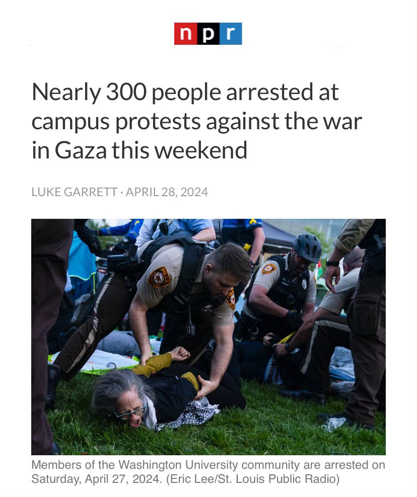 I’d add that students are protesting the Israeli government’s genocide against Palestinians in Gaza, and the U.S. government’s complicity in the same. They are not protesting against “the war in Gaza,” unless you modify that as “Israel’s genocidal war in Gaza.”