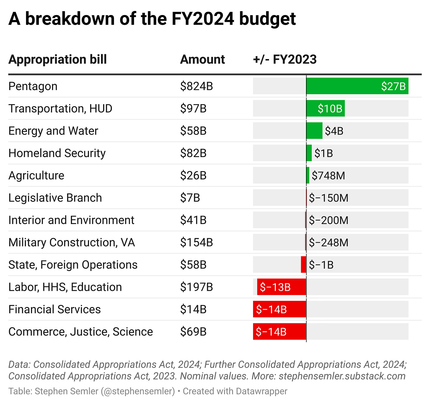 Courtesy of Stephen Semler, let’s take a look at the federal budget recently signed into law by President Biden: